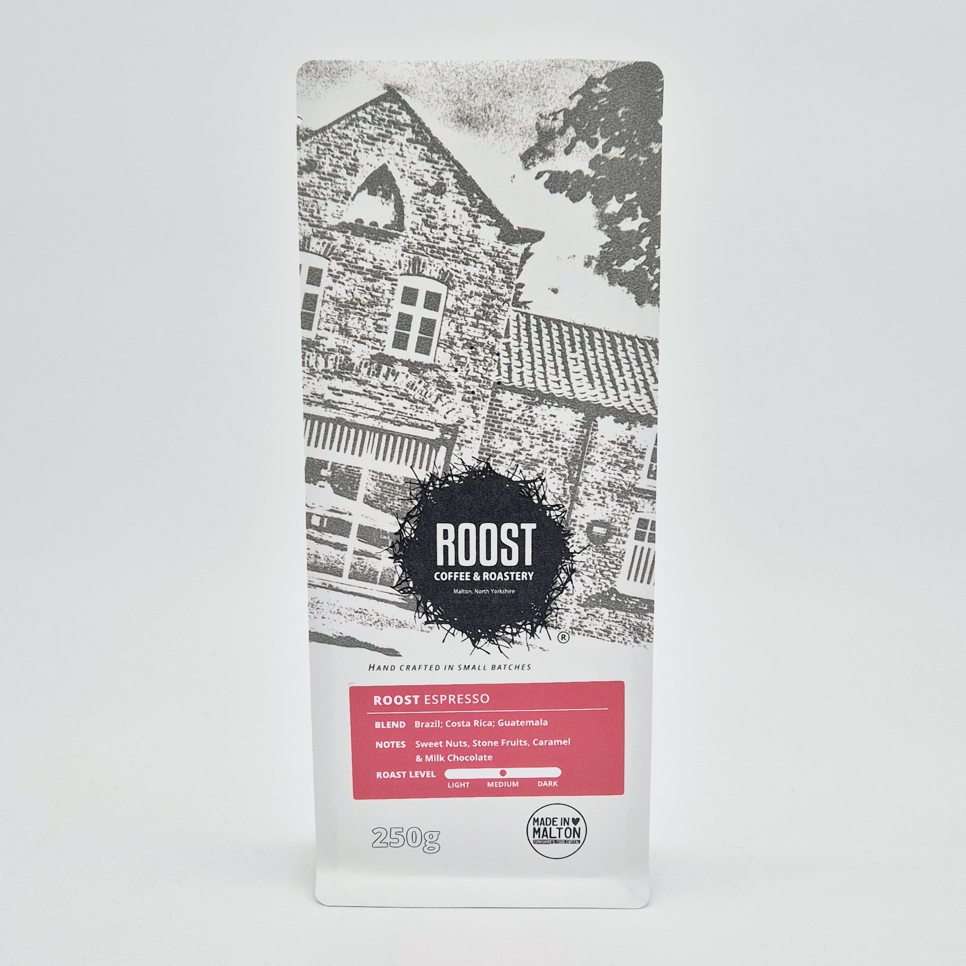 | Grind | Ground for Aeropress, Ground for cafetière, Ground for espresso, Ground for filter, Ground for stovetop, Whole beans |